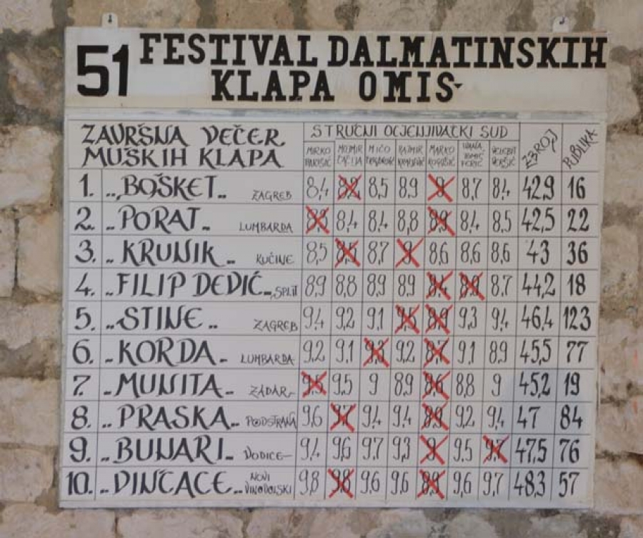 Klapa Vinčace pobjednica 51. festivala dalmatinskih klapa Omiš 2017.